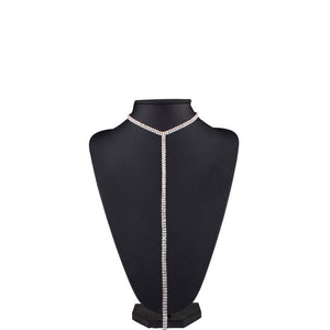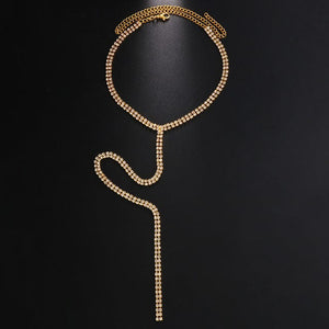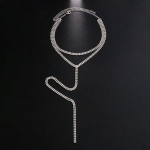 Setzen Sie ein Statement mit unserer Körper Halskette, einem fesselnden Accessoire, das entworfen wurde, um Ihren Körper mit strahlender Eleganz zu betonen. Gefertigt mit glatten Ketten und schimmernden Akzenten, strahlt diese Halskette Raffinesse und Glamour aus und fügt jedem Outfit einen Hauch von Anziehungskraft hinzu. Ob allein als Blickfang oder in Kombination mit anderen Accessoires für eine persönliche Note getragen, verspricht sie, Ihren Stil mit ihrem schicken Design zu veredeln.