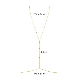 Diese Körperschmuck für Damen verleiht Ihrem Look eine elegante und feminine Note. Die feine Kette schmiegt sich sanft an die Körperform und lässt sich perfekt zu Bademode, luftigen Sommerkleidern oder tief ausgeschnittenen Outfits kombinieren. Erhältlich in Gold oder Silber, ist dieses Schmuckstück ideal, um mit Leichtigkeit und Stil aufzufallen, ohne zu übertreiben.