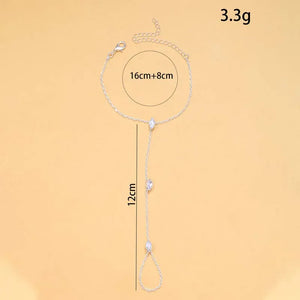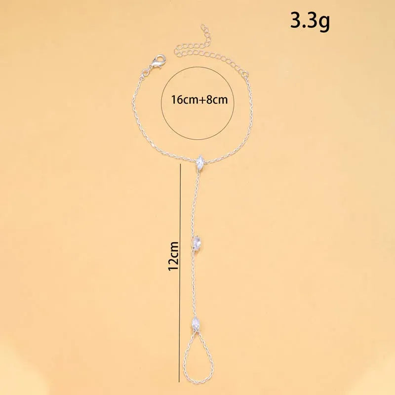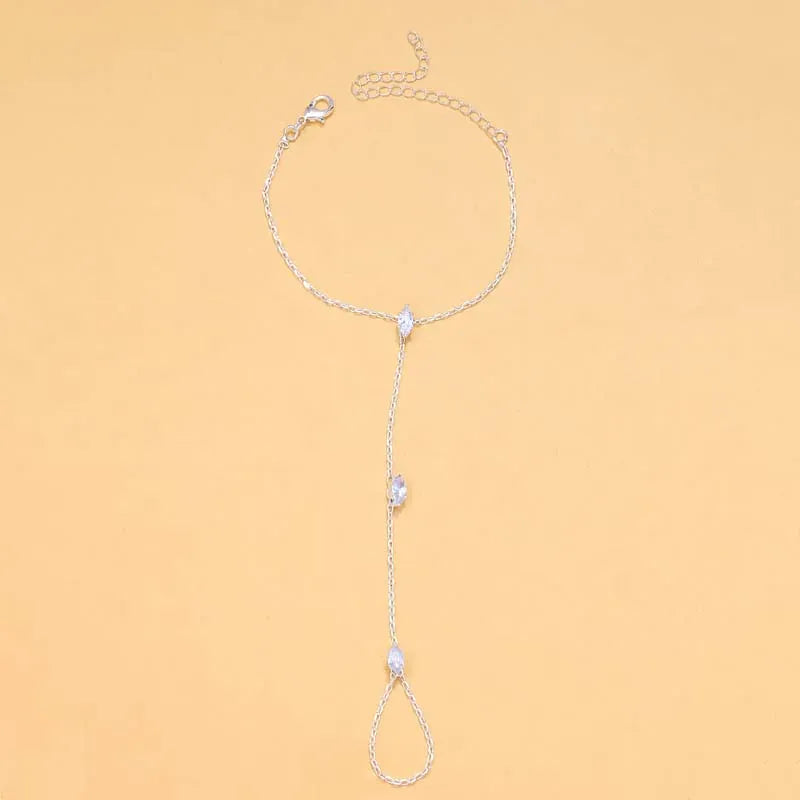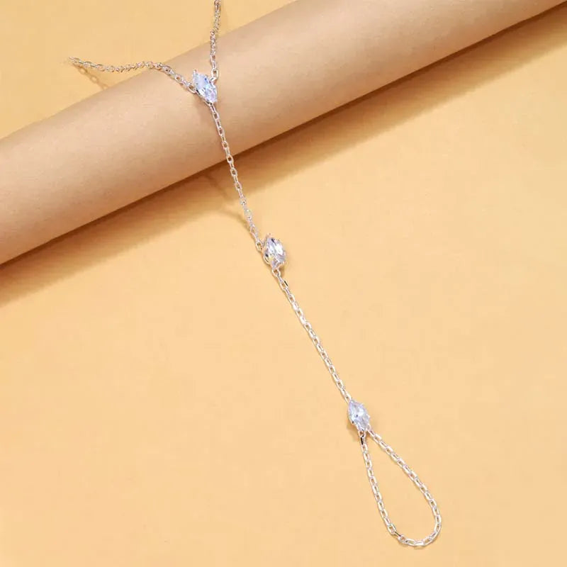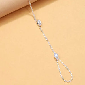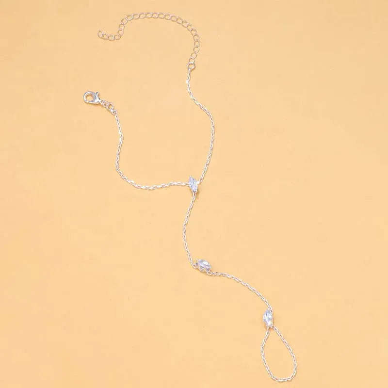 Die Kristall Handkette ist ein elegantes Schmuckstück, das Armband und Ring durch eine feine Kette miteinander verbindet und mit funkelnden Kristallen veredelt ist. Sie legt sich anmutig über den Handrücken und sorgt bei jeder Bewegung für ein faszinierendes Lichtspiel.