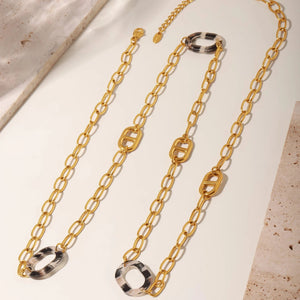 Die Lange Kaffeebohnen-Halskette (96+5 cm) überzeugt mit ihrem markanten Kaffeebohnen-Design in extra-langer Ausführung. Mit ihrem edlen Glanz und der besonderen Struktur verleiht sie jedem Outfit Charakter – ob für den Alltag, ein Business-Outfit oder elegante Abendlooks.