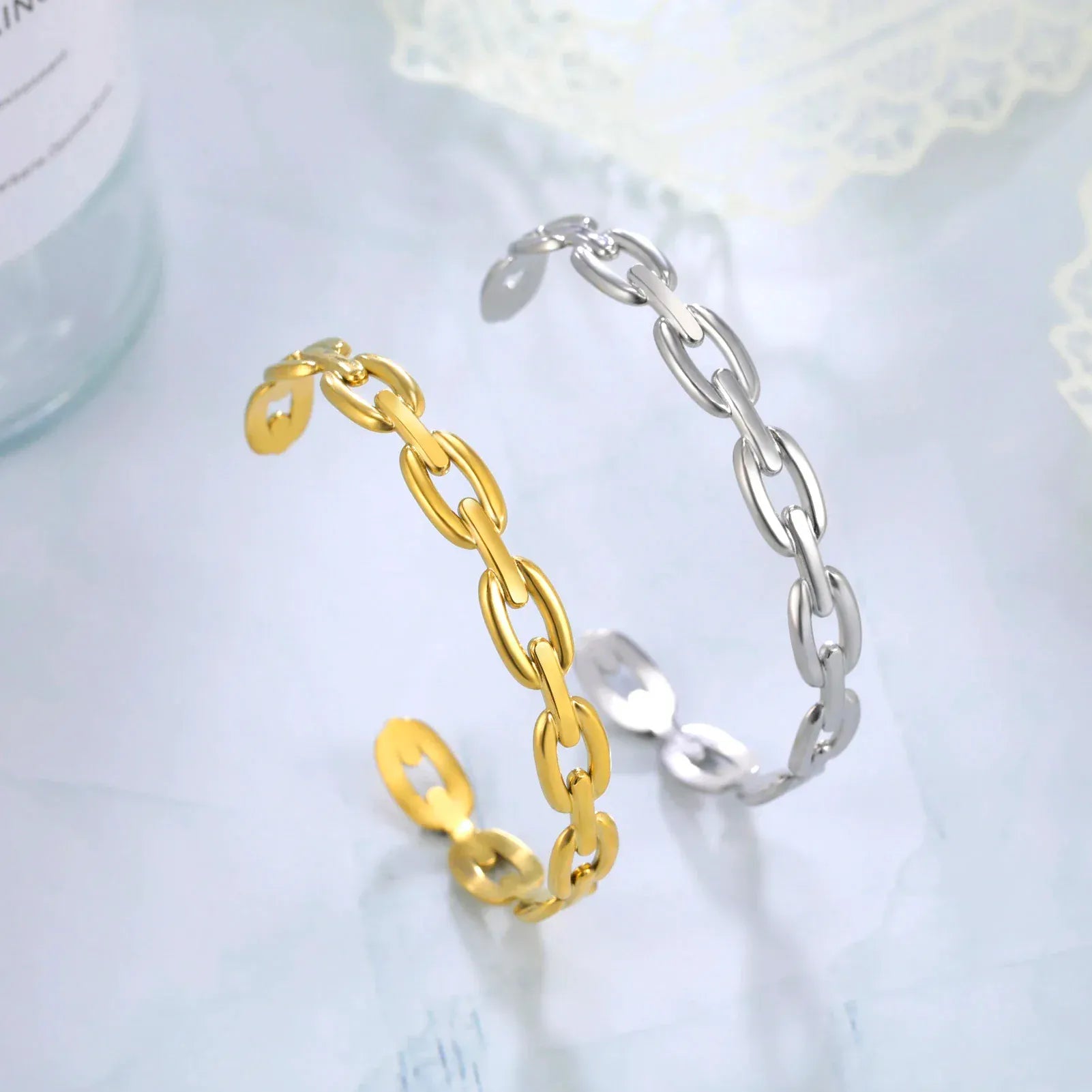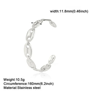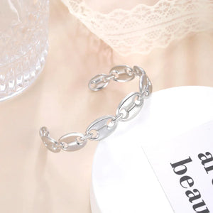Das Offenes Armband mit Kaffeebohnen verbindet klare, moderne Linien mit dem ikonischen Bohnenmotiv, das für Glück, Energie und Fülle steht. Die offene Form verleiht dem Schmuckstück eine leichte, elegante Ausstrahlung und macht es zu einem vielseitigen Accessoire für jeden Tag. Ein Design, das Minimalismus und ausdrucksstarke Details perfekt miteinander verbindet.