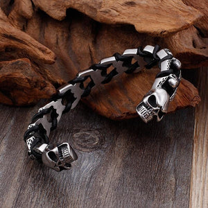 Entdecken Sie ein auffälliges Accessoire mit unserem Offenes Totenkopf Armband Herren. Dieses Armband ist für diejenigen gemacht, die gerne aus der Masse herausstechen. Es verfügt über ein einzigartiges offenes Design mit detaillierten Totenkopf-Motiven an jedem Ende. Es ist ein kühnes Statement-Stück, das jedem Look eine gewisse Kante verleiht, egal ob lässig oder elegant. Dieses Herrenarmband ist die perfekte Möglichkeit, Ihre Individualität und Ihren furchtlosen Stil zu zeigen.