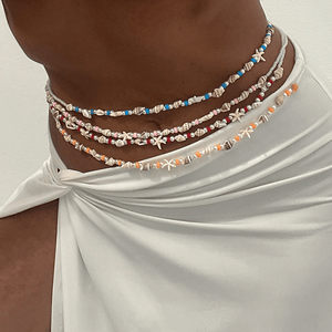 Verleihe deinem Look einen Hauch von Natürlichkeit und Raffinesse mit unserer Perle Bauch Kette, dem zarten Körperschmuck, der deine Taille auf elegante Weise betont. Jede Perle ist sorgfältig ausgewählt und verleiht deiner Silhouette ein edles, feminines Strahlen. Ideal für Strandtage, Festivals oder Sonnenuntergänge am Meer.