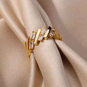 Verleihen Sie Ihrem Outfit eine moderne Eleganz mit unserem schicken Ring mit Stäben, einem raffinierten Accessoire, das mit seinem schlanken Design heraussticht. Dieser minimalistische Ring verfügt über ein filigranes Stabmotiv, das sich elegant um Ihren Finger schmiegt und einen zeitgemäßen und auffälligen Look schafft. Handgefertigt mit Präzision und Liebe zum Detail, ist dieser Ring die perfekte Wahl für diejenigen, die schlichte Eleganz zu schätzen wissen.