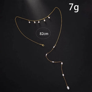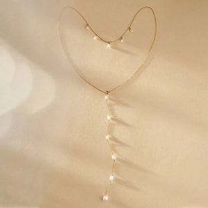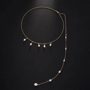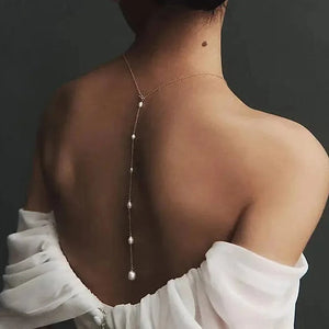 Die Rückenkette Gold mit Perlen ist ein luxuriöses Accessoire, das rückenfreie Kleider perfekt ergänzt. Zarte Perlen schmücken den goldenen Schimmer der Kette und verleihen Ihrem Outfit eine romantische, elegante Note. Ideal für Hochzeiten, Abendkleider oder besondere Anlässe, sorgt sie für einen unvergesslichen Auftritt.