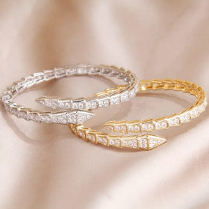 Entdecken Sie unser Schlangenarmband, ein faszinierendes Schmuckstück inspiriert von der geschmeidigen Form der Schlange. Mit akribischer Liebe zum Detail gefertigt, verfügt dieses Armband über ein schlankes und stilvolles Schlangendesign, das sich mit Anmut und Eleganz um Ihr Handgelenk schlängelt. Seine kunstvoll geschnitzten Details und polierte Oberfläche verleihen jedem Outfit eine Note von Raffinesse und machen es zu einem Must-Have-Accessoire für diejenigen, die einzigartige und exotische Designs schätzen.