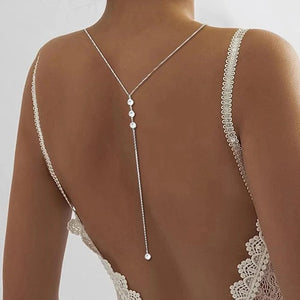 Die Silber Rückenkette mit Strass ist das ideale Accessoire, um rückenfreie Outfits glamourös in Szene zu setzen. Mit ihren glitzernden Strasssteinen fällt sie zart entlang des Rückens und fängt bei jeder Bewegung das Licht ein. Perfekt für Hochzeiten, Abendkleider oder besondere Anlässe, verleiht sie Ihrem Look eine unvergleichliche Raffinesse.