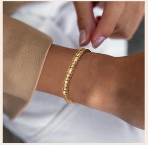 Tauchen Sie ein in die Welt des Glanzes mit unserem Tennis Armband Damen, dem Inbegriff von luxuriöser Raffinesse und zeitlosem Design. Dieses exquisit gefertigte Schmuckstück kombiniert den Glanz präzise gesetzter Steine mit einer klassischen Kette und bietet eine perfekte Balance aus Haltbarkeit und Eleganz. Mit einem sicheren und verstellbaren Verschluss können Sie die perfekte Passform für Ihr Handgelenk sicherstellen, Komfort mit Eleganz verbindend.