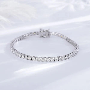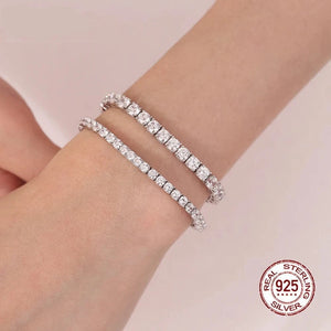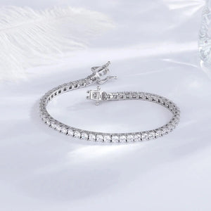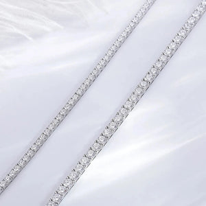 Dieses Tennis Armband Damen Diamant verbindet schlichte Raffinesse mit modernem Stil. Verfügbar in zwei Breiten, 3 mm für dezenten Chic und 4 mm für einen auffälligeren Look, ist es der perfekte Begleiter für jeden Anlass. Die einzeln gefassten Steine glänzen wie echte Diamanten und verleihen dem Dünnes Armband eine luxuriöse Ausstrahlung, ohne den Preis eines echten Diamantschmucks.